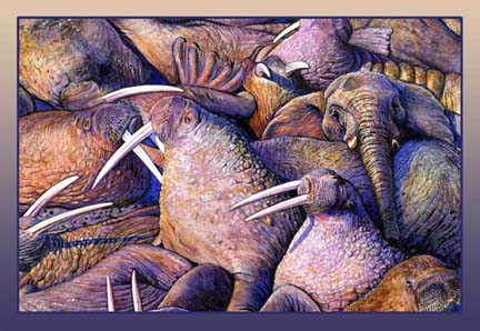 It’s always so interesting to see the repetition of patterns in nature. In this case, gnarled skin and tusks so similar yet two species so far removed—it seemed like a fun idea to get walrus’ and elephants acquainted.