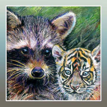 Lions and tigers and raccoons—oh my! Here is another image that speaks of peaceful coexistence. (If only we humans could set an example.)