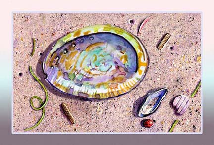 Each abalone shell is a work of art—a masterpiece by Mother Ocean. The ladybug is one of my signature symbols. Sometimes, they are attracted to the wet sand of the shoreline, where I try to rescue them from the tide whenever possible.