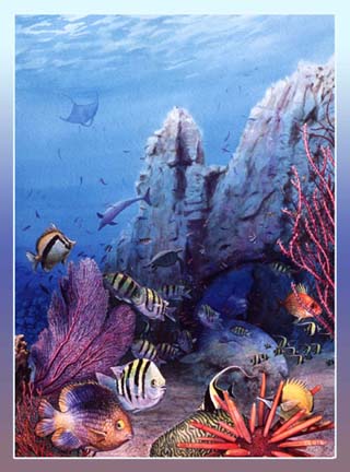 This is the famous arch at Cabo San Lucas in Baja, California, except it is fancifully submerged. Under the arch, a grey whale feeds on critters filtered from the sandy sediments. I painted this watercolor for Carlos who lives on the hillside overlooking the harbor there.