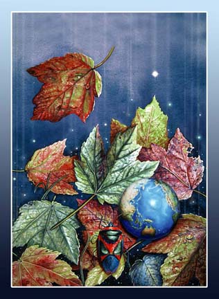 Resplendent as they may be, fall leaves are harbingers of darker, tougher times to come. Can you find the face? The orginal painting is in the collection of my friend, Norm Sapoznik.