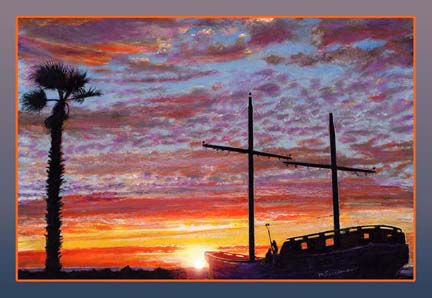 Here is another depiction of the Spanish galleon ship and the zipline which is silhouetted against a glorious Pierpont Beach sunset.