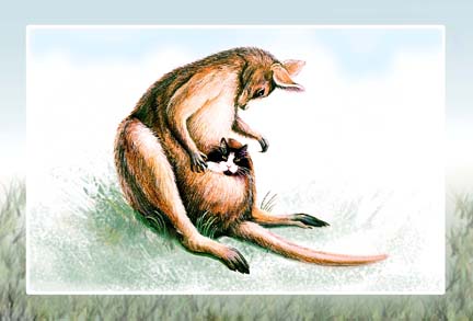 The inspiration for this painting came when I was in a wildlife preserve in Australia, petting a mother kangaroo and her joey. I pictured my crazy cat Punky, poking out of the pouch instead.